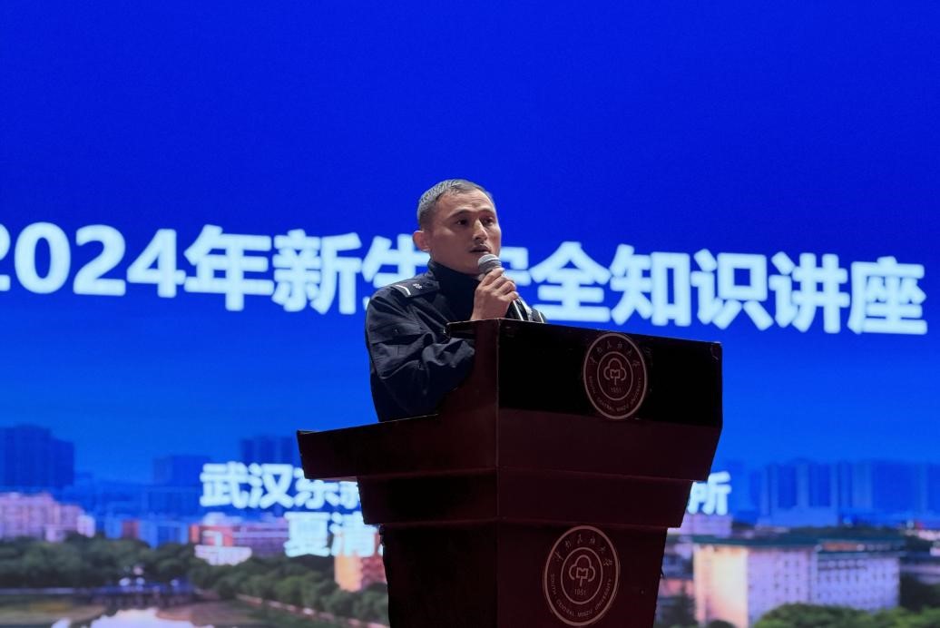 接着,吴高涛警官以高校盗窃、火灾及交通事故等真实案例为引,从财务管理、火灾防控、交通安全、纠纷处理和电信诈骗五个方面,系统地为新生讲解了校园安全常识。他通过播放真实监控视频,让新生们直观感受到了校园中常见的安全隐患。吴警官提醒大家,在日常生活中要避免冲动行事,特别是在面对校园中可能出现的纠纷或冲突时,要保持冷静,及时寻求帮助,确保人身安全。