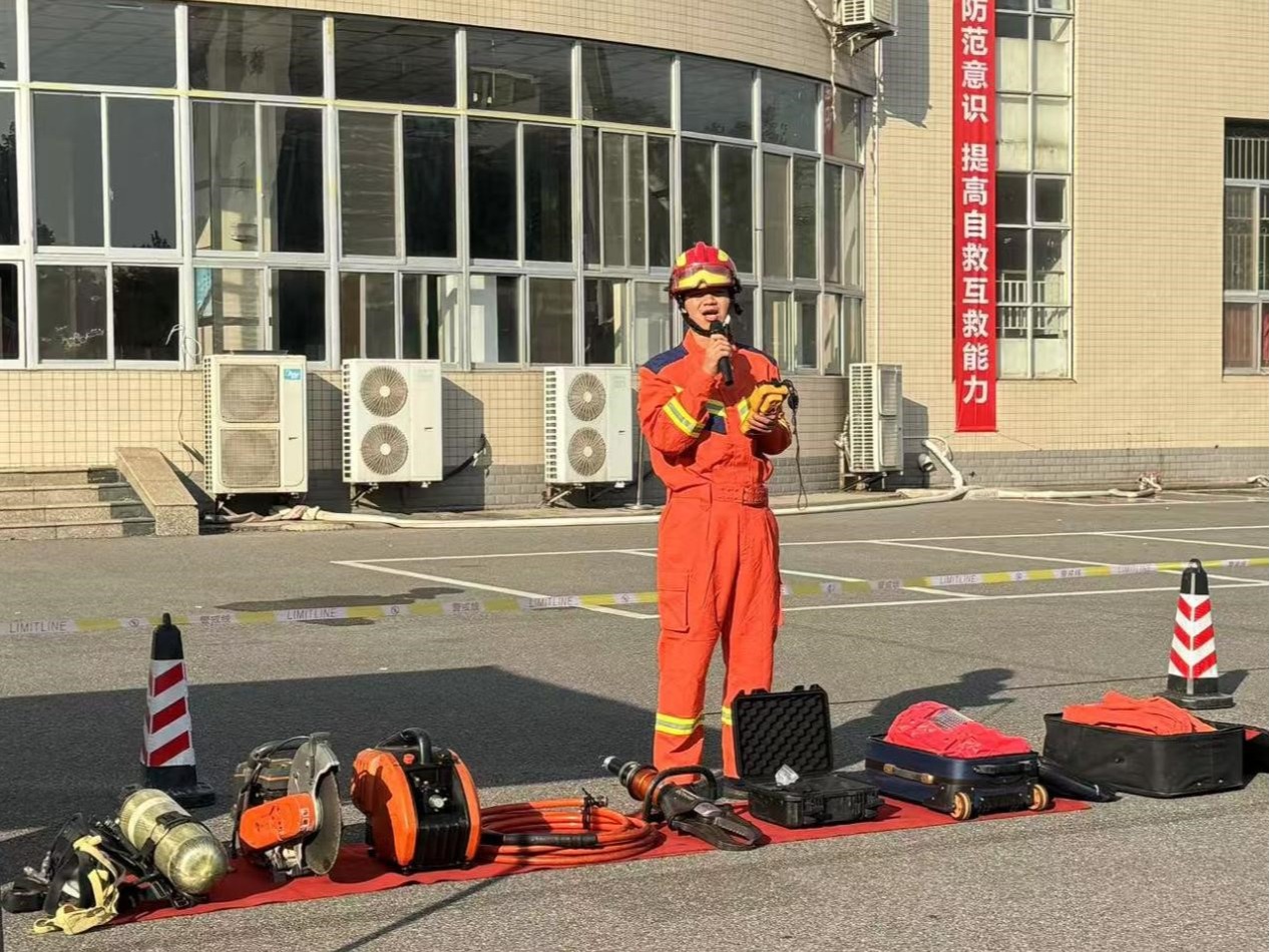 消防员们还向师生展示了无齿锯、防蜂服、简易防化服以及红外热成像仪等一系列消防救援用具,并详细介绍了其用途和操作方法。