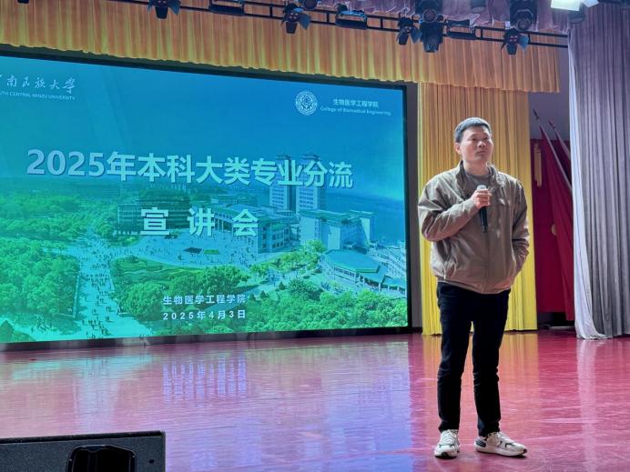 (文/王浩然,图片/王浩然) 4月3日,生物医学工程学院2025年本科大类专业分流宣讲会在学术会堂举行。专业教师陈军波、周慧、刘李漫、郑冬云、李旭及24级辅导员叶颖出席,全体2024级本科生参会。