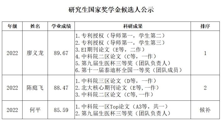 根据《beat365英国正版唯一网址研究生国家奖学金评审实施办法(修订)》(民大发〔2018〕21号)和《生物医学工程学院研究生国家奖学金评审实施细则》及相关文件精神,经研究生个人申报,学院研究生国家奖学金评审小组综合评议,并报学院党委会审议通过,确定2024年生物医学工程学院研究生国家奖学金候选人名单,现公示如下: