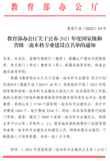 2022年6月7日,教育部发文通知,我院“生物医学工程”专业入选2021年度国家级一流本科专业建设点,“医学信息工程”专业入选2021年度省级一流本科专业建设点。至此学院两个本科专业全部进入教育部“双万计划”中的一流本科专业。