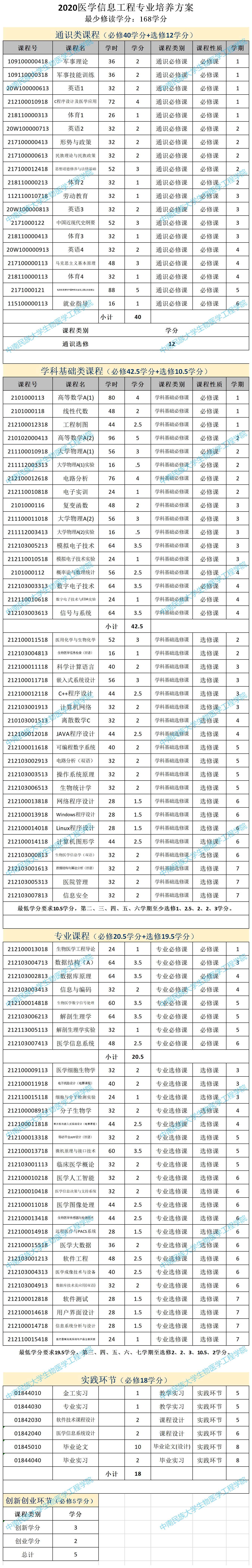2020医信培养方案