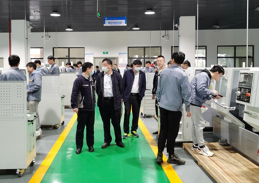 2022年3月9日上午,阳光明媚,春暖花开,杜冬云副校长一行莅临工程训练中心,亲切看望正在指导实训的老师和实训学生,听取了潘泽江主任、贺军副主任关于新学期中心运行情况与下一步建设发展规划的专题汇报。杜冬云副校长对中心老师们能够克服疫情困难,有序开展今年的实训工作给予了充分肯定;同时也指出工程训练中心要特别注意实训安全,完善实验室建设,加强工训实践课程体系建设和师资队伍建设,按照“高起点开局·高标准建设·高效率运行·高效益发展”的建设思路,推进工训中心的“二次创业”,不断提高教育教学与管理水平,充分发挥beat365官网实践教学基地双创育人的作用;不断提高服务区域经济社会高质量发展的能力,更好地发挥经济社会效益。
