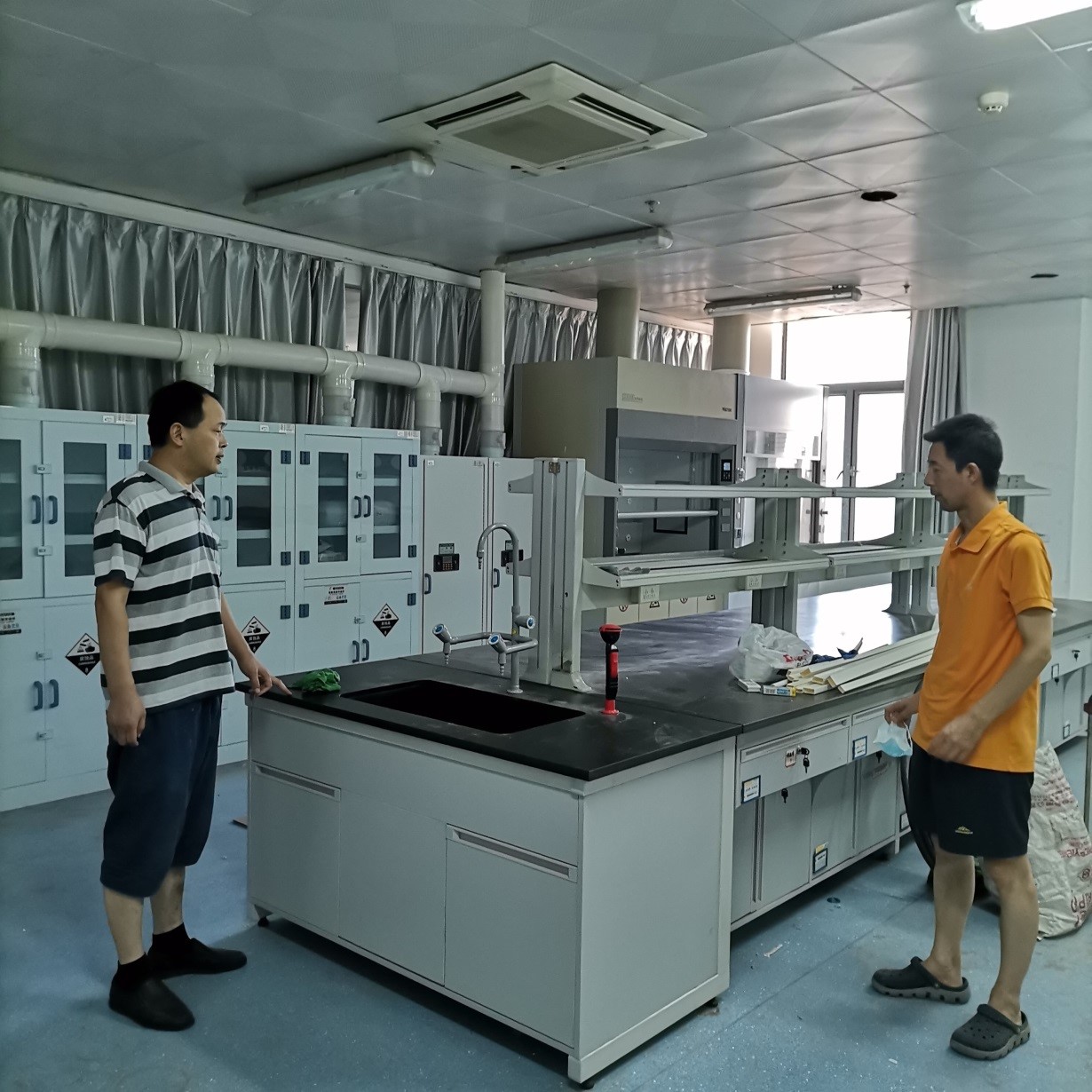 张向明副主任对酷暑中进行施工人员表示感谢,同时要求,一是做好防暑降温,保证施工人员安全;二是要保证施工质量,按期完成实验室改造,保证新学期正常使用。