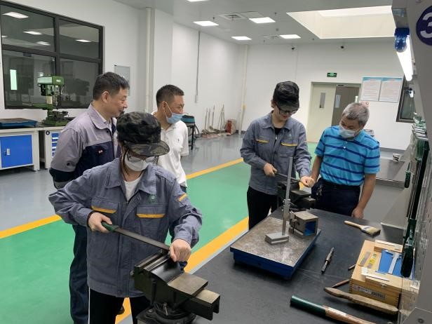 贺军副主任详细介绍了工程训练中心的教学运行和同学们的实训情况,工训中心新学期稳定扩大实训规模、增加实训项目、加强安全保障,使化材学院的学生实训内容更加丰富,体验感更强。学院领导们对beat365官网工训中心的优良环境和运行保障十分肯定,邓行书记对工训中心老师们的辛勤劳动表示感谢,并鼓励同学们珍惜实训机会,提高实践能力;注意实训安全,服从老师管理;重视疫情防控,确保身心健康。学院领导的关怀,使同学们倍受鼓舞,并进一步激发了同学们的实训学习热情。