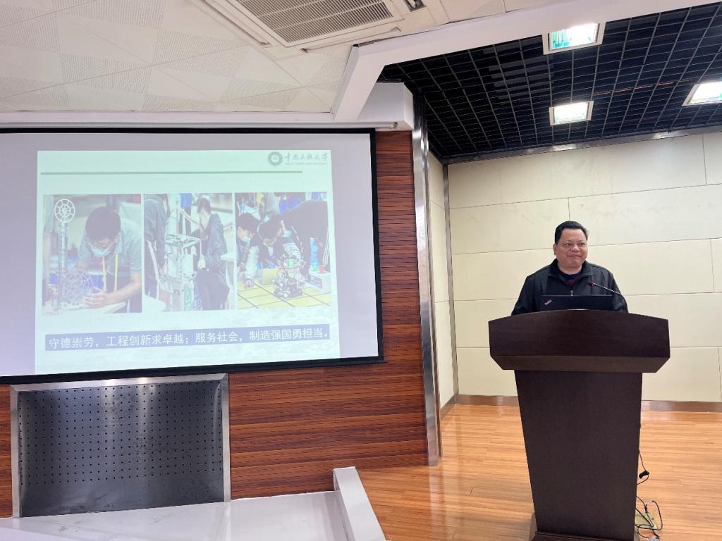 潘泽江致辞,他表示本赛事以培养面向适应社会发展需求的工程师为目标,服务于国家创新驱动与制造强国战略,强化工程伦理意识,坚持基础创新并举、理论实践融通、学科专业交叉、理工人文结合,在新时代人才培养中起着重要作用,希望各位队员团结协作、迎难而上,把握好学科竞赛这一第二课堂,大放异彩,争创佳绩。