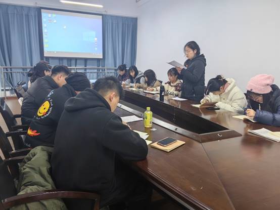 为了进一步深入贯彻落实党的二十大精神,学习贯彻习近平文化思想,传承发展优秀传统文化,有力推动青少年读书行动,2023年12月30日下午体育学院研究生第二党支部在学院体训中心203举行了“典耀中华”读书行动为主题的支部书记上党课活动。本次活动由研究生第二党支部书记潘宁主持,研究生第二党支部全体党员参加。
