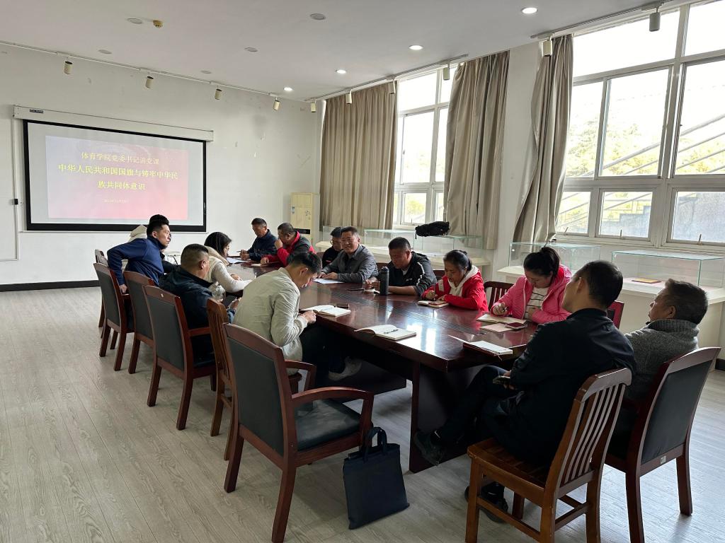 (作者:汪如锋)2023年11月23日,体育学院教工第一支部举行主题党日活动,活动聚焦“推进铸牢中华民族共同体意识融入办学治校全过程”,要求紧紧围绕深入学习宣传贯彻习近平总书记在主持二十届中央政治局第九次集体学习时的重要讲话精神,深化推进学校铸牢中华民族共同体意识教育,牢固树立休戚与共、荣辱与共、生死与共、命运与共的共同体理念,将铸牢中华民族共同体意识融入办学治校全过程。