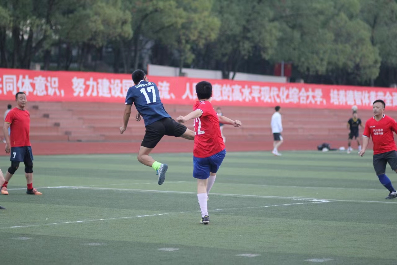 本届教职工足球比赛历时一个月,来自15个基层学院和行政机关的教职工组成七支足球代表队,共90余名教职工参加。