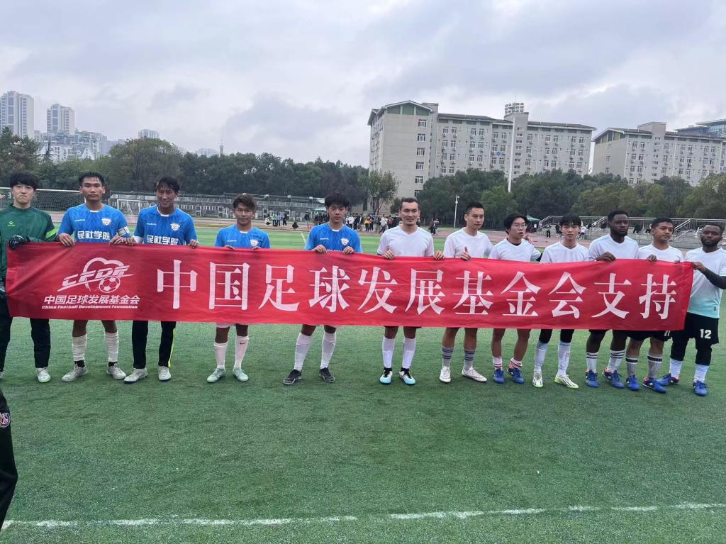 图为民族学与社会学学院男子足球队与国际教育学院男子足球队合影。侯志涛摄