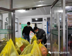 早上七点,在凛冽的寒风中,学生党员干部、宿舍长们戴好口罩,有序分组,在与后勤工作人员完成对接后,他们分别前往各宿舍为学生送早餐。在配送途中,他们分工明确,一人配比送餐份数,一人敲门询问寝室实际人数,一间间地敲门。一早上下来,虽然筋疲力竭,但他们不辞辛苦、不较得失。