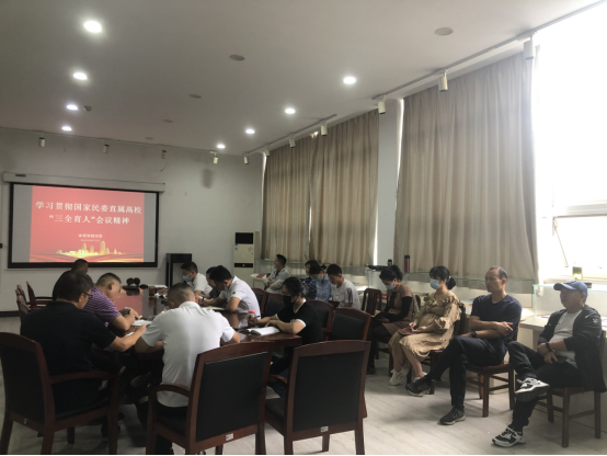 体育学院党委副书记、院长郝家春强调,教职工要将学习贯彻国家民委直属高校“三全育人”会议精神与落实学校重点工作结合起来,提升自身理论水平和政治觉悟,将“三全育人”贯穿于教育教学全过程,不断提升人才培养质量,实现立德树人的教育目标。