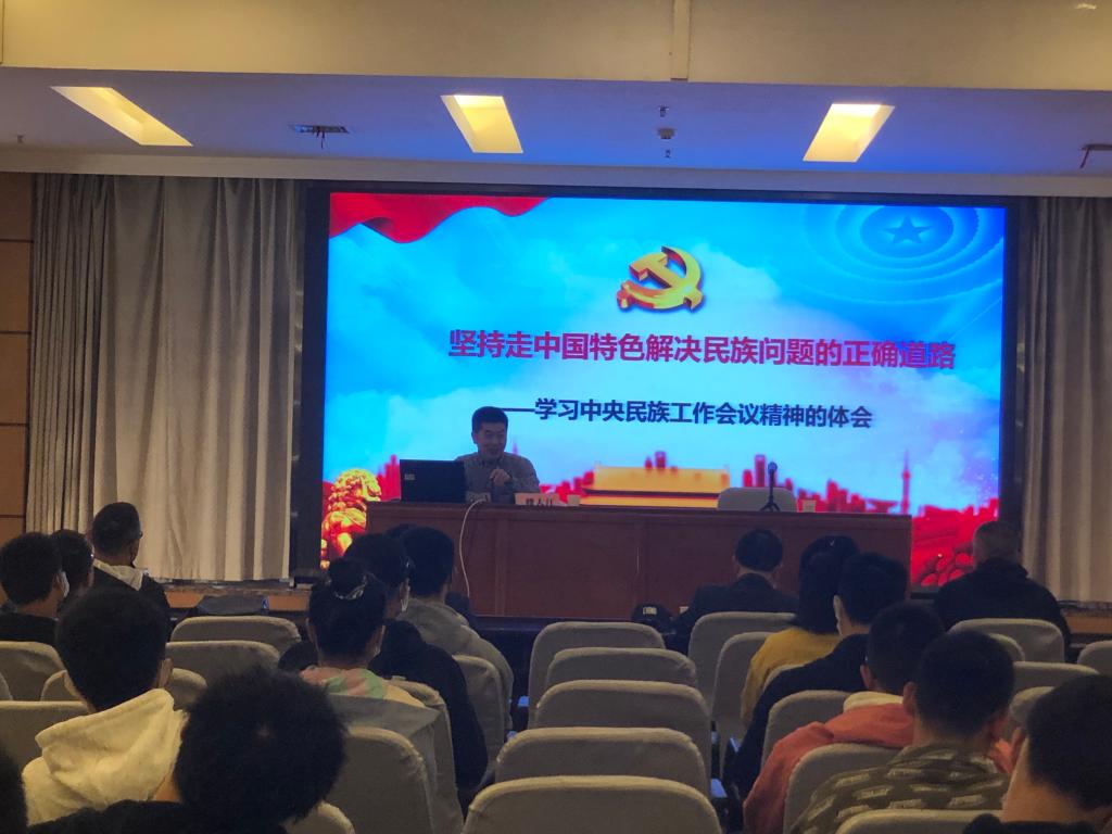杨骞书记做总结发言。他指出,魏大江书记“坚持走中国特色解决民族问题的正确道路”的宣讲博古通今,精彩纷呈。魏书记将我国民族理论政策与中国历史、国际格局、文学作品和热点事例相结合,深入浅出,引人入胜。本次以铸牢中华民族共同体意识为主线的宣讲,是对中央民族工作会议精神的学习宣传和贯彻。他要求广大师生要充分认识中央民族工作会议的重大意义,深刻领会习近平总书记关于加强和改进民族工作的重要思想,牢牢把握铸牢中华民族共同体意识主线,凝心聚力,共同做好民族院校人才培养工作,为民族团结进步事业的发展做出自己的贡献。