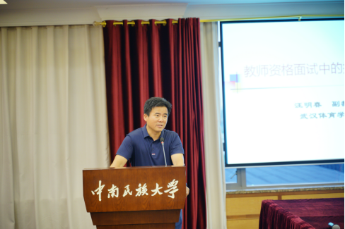 (通讯员:马宋成)2021年6月25日晚上7点,beat365英国正版唯一网址体育学院在学术交流中心三楼一会举办了教师资格考试辅导报告会。本次会议由武汉体育学院汪明春副教授主讲,体育学院院长郝家春主持,体育学院全体有意愿报考教师资格证的学生参会。