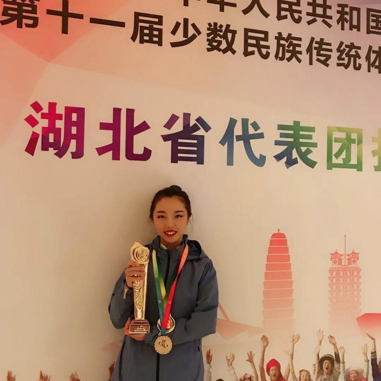 关筱妍是全宿舍第一个获得保研资格的上岸者,全年级排名第四的大学四年平均绩点让她的学霸称号当之无愧。运动会赛场上她更是健美操专项健将,2017年-2018年全国全民健身操舞大赛名列前茅、2019年全国少数民族传统体育运动会表演项目金牌、湖北省大学生运动会民族健身操规定项目、自选项目一等奖……飞扬的身姿、曼妙的脚步留下了动人瞬间。