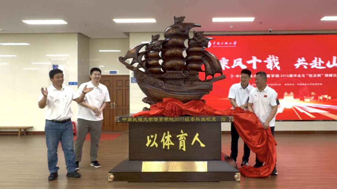 上午11时30分,院领导班子陪同校友们移步体训楼进行了隆重的捐赠仪式,校友们向体育学院捐赠“一帆风顺”巨型雕像,象征体育学院发展乘风破浪,一帆风顺。雕像上“以体育人”的大字,更是体现了通过体育运动实现全面育人的教育理念。