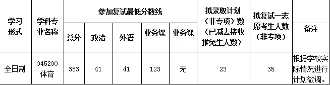 (一)根据本专业招生计划数和上线生源情况,报考我院体育硕士专业考生进入复试的初试成绩要求如下: