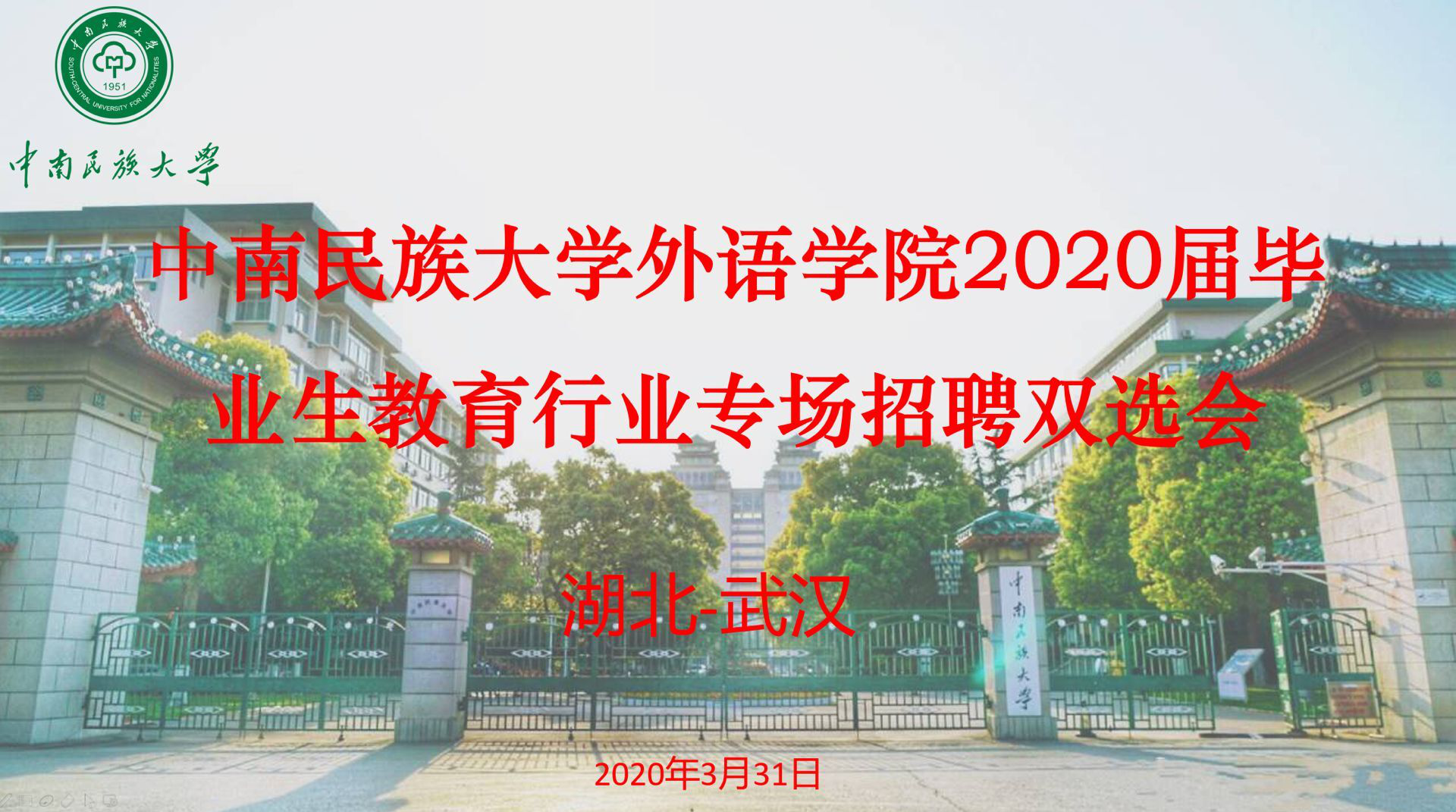 3月31日下午,外语学院举办2020届毕业生教育行业线上专场双选会。经过近一个月的紧张筹备,最终邀请五家优质企业进行宣讲。