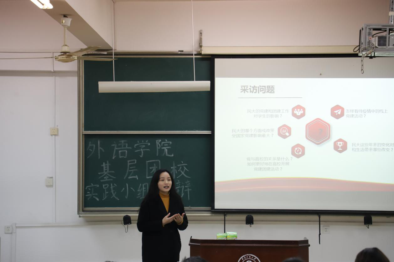 本次答辩活动由PPT展示与讲解和提问两部分组成。十六个实践小组的代表们进行了答辩展示,他们对其小组开展的实践活动进行了总结,并分享了在实践活动中的所想所得。各实践小组通过对校党史的查找与学习,采访老教职工、查阅书籍资料、参观校史馆等形式带领组内成员学习党学知识,在实践中提升组员的综合能力。
