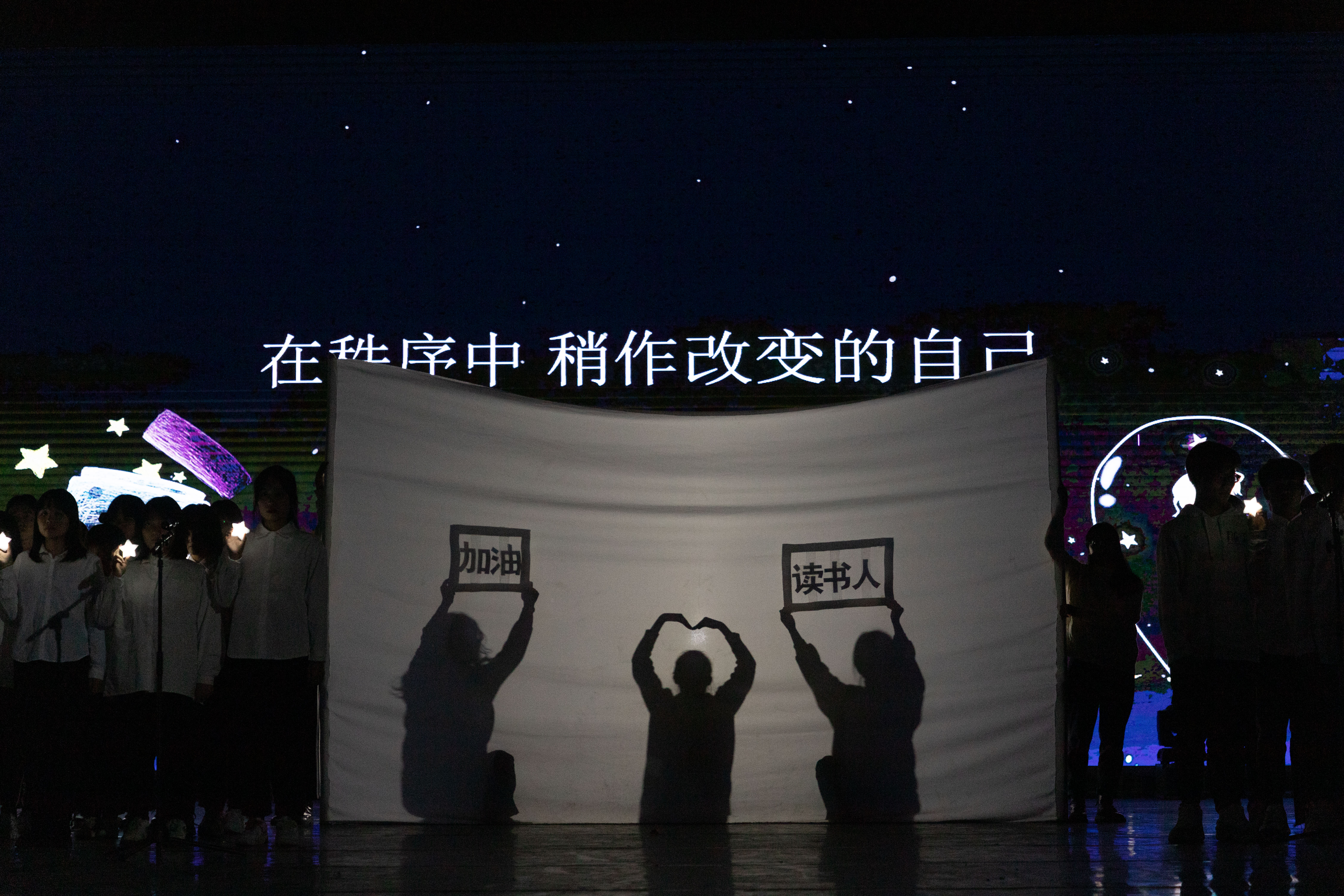 影子戏与合唱《青春》将皮影戏与大学生的青春之旅相结合,再现了校园生活的点点滴滴,同学们手捧小灯,浅吟低唱,表达出对世间万物的敬意,对莘莘学子的祝福。小品《我们都一样》构思新奇,内涵深刻,讲述了男女主人公互换灵魂和生活,学会了彼此理解、相互包容的故事。