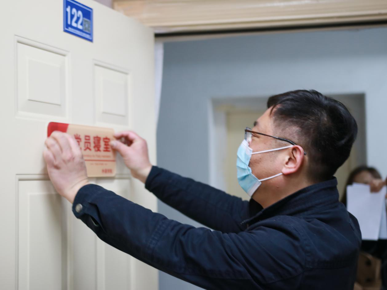 3月4日下午,我院党委书记戴迎峰、院长易立新、党委副书记陈晓希、副院长李敏杰、邓之宇、李明、皋峰、18级辅导员刘甜甜、19级辅导员陈骊姗等前往我院本科生、研究生所在寝室,关心学生学习生活,并为“党员寝室”挂牌。