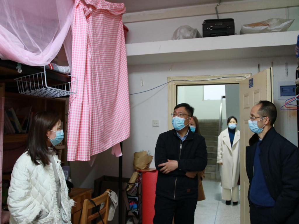 领导老师们还查看了宿舍空调、电灯等设施,了解同学们学习生活上的具体困难。