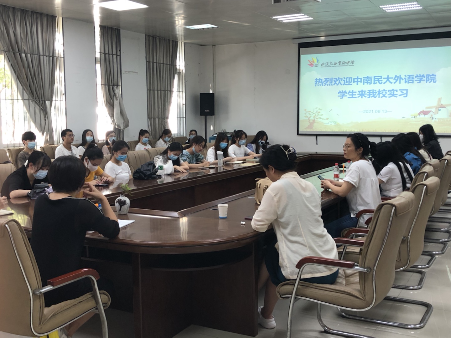 动员会后,刘永清老师带领全体同学到光谷实验中学参加座谈,就具体实习工作进行沟通和安排。