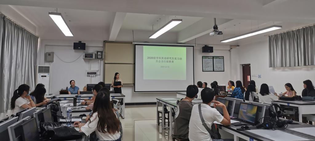 (2020级学科教学(英语)硕士在外语学院参加实习行前教育动员会 肖蒙摄)