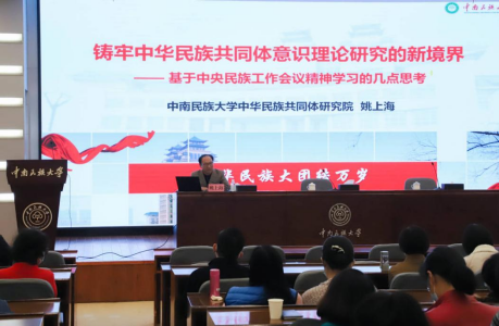 姚上海的报告以《铸牢中华民族共同体意识理论研究的新境界—基于中央民族工作会议精神学习的几点思考》为题。在报告中,他以中央民族工作会议的召开为切入点,阐明我国当前民族工作的重要性,认为我们应当学习好、领悟好、贯彻好会议精神。而后,姚上海从铸牢中华民族共同体意识重大原创性科学论断、理论研究若干认识问题、理论研究的重点内容这三个方面出发,系统而全面地梳理了中华民族共同体理论的发展历程,点明了铸牢中华民族共同体的历史方位,强调了铸牢中华民族共同体意识的重大意义和现实需要,并指出了习近平新时代中国特色社会主义思想指导下的民族工作思想的研究方向。