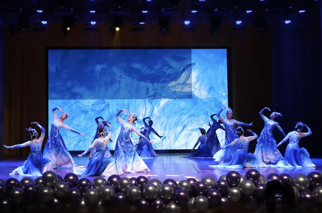民舞组中《水》表演者一袭蓝色长裙翩翩起舞,舞姿婀娜动人;外国语2104班歌舞《Love Story》兼具了班级特色与青春气息;爵士组《Girls》的表演者们则以其动感十足的舞蹈赢得了观众的阵阵喝彩,此后班助们准备的暖心小视频和可爱俏皮的节目更是将现场气氛推向高潮。