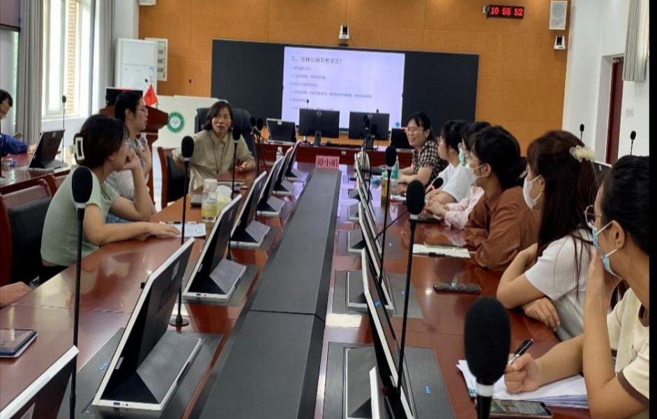 谭校长首先结合一线教学实例,指出科研能力对教师发展和成长的重要性,她说到,新时代的教师不仅仅需要做好教书育人的工作,更重要的是能够在教育教学的过程中发现问题,带着问题进行研究,从而做到教-学-研一体化;随后,针对什么样的研究才是有意义的研究,谭校长结合社会热点和一线教师的亲身体会进行了分享。在交流环节,同学们提出了近期在论文选题中的困惑和研究中遇到的困难,谭校长从专业角度和研究的可行性等层面进行了耐心解答。皋峰老师、刘永清老师和舒静老师也为同学们提供了一些专业建议。刘老师还就论文开题和后期的专业实习提出要求,希望同学们能够找到切实可行的主题和角度开展研究,在实习的过程中带着问题去思考,带着收获归来;不断地发现问题、提出问题、解决问题,从而促进自身能力的逐步提升。