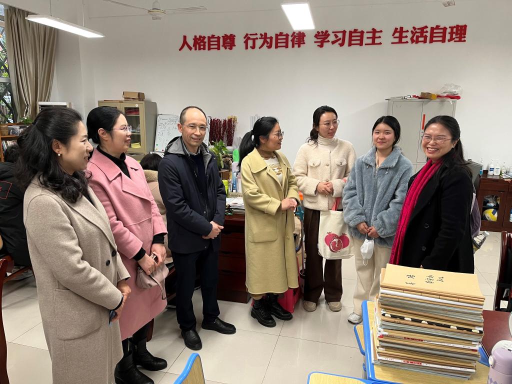 12月5日下午,外语学院院长易立新一行前往光谷实验中学慰问参加实习的2022级学科教学(英语)研究生和实习指导教师。
