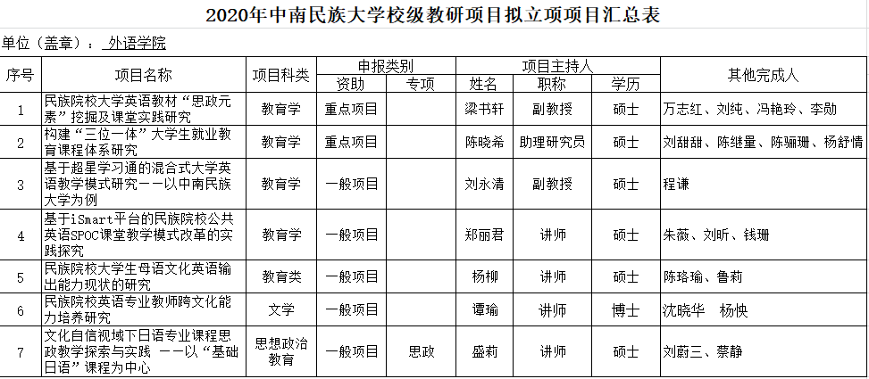 外语学院2020年beat365英国正版唯一网址校级教研项目拟立项项目公示