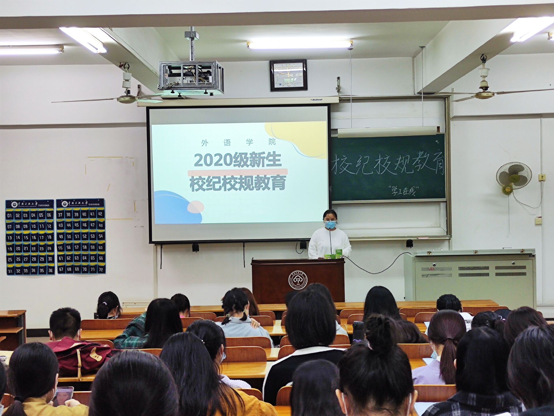9月22日晚,我院2020级新生召开主题班会,本次班会以习近平新时代中国特色社会主义思想为指导,围绕爱国主义教育、疫情安全防控教育、校纪校规教育以及勤工助学宣讲四个部分展开。