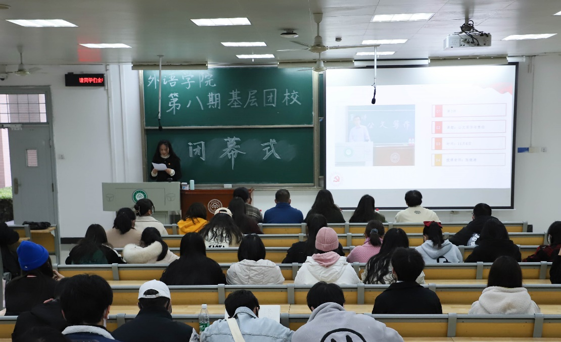 首先,主持人带领大家回顾本期基层团校的主要内容。在基层团校动员会中,外语学院团委组织部刘佳就团校概况、课程设置、实践成果展示、评优制度等方面做出了详细介绍;在基层团校班级见面会上,各班班主任向同学们详细介绍了课程设置和学习任务,各班投票选出班长、团支书、组织委员和宣传委员各一名;11月6日,第八期基层团校培训开幕式顺利举行。本期基层团校设有理论课程和实践课程,从多个方面提高了同学们的团学知识素养。