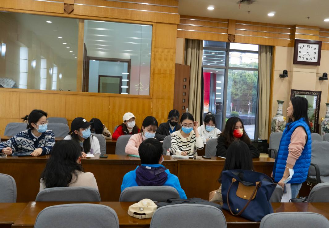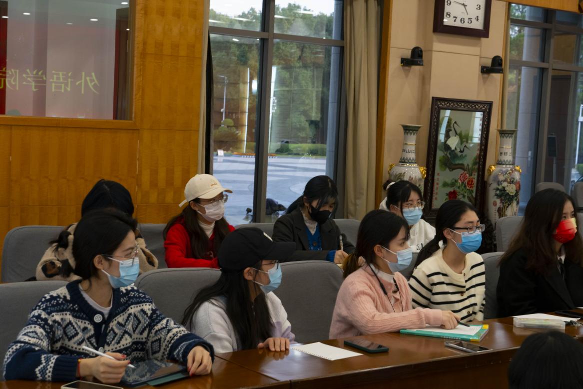 会议开始,商英专业负责人谭瑜老师提出,此次座谈会的目的主要在于加强师生交流,切实了解同学们的学习、生活情况与实际需求,并据此提出针对性的建议与解决方案,以帮助同学们更好的了解信息,做好个人规划。会议期间,各班级学生代表汇报了各班整体学习情况,并就前期收集到的学生问题征求各专业老师的意见,问题集中在课程教学、实习实践、考研就业及证书考试等各个方面,汤茜、沈晓华、杨怏等参会老师对具体问题一一进行了解答,包括如何科学规划学期课程学习,合理选课,如何根据不同类型的专业课程选用对应的学习方法,怎样备考BEC等相关证书考试,学科竞赛及各级社会实践活动的重要性,毕业论文的重要注意事项,就业与考研准备的建议等等,并请参会学生代表认真记录并传达给班级同学。