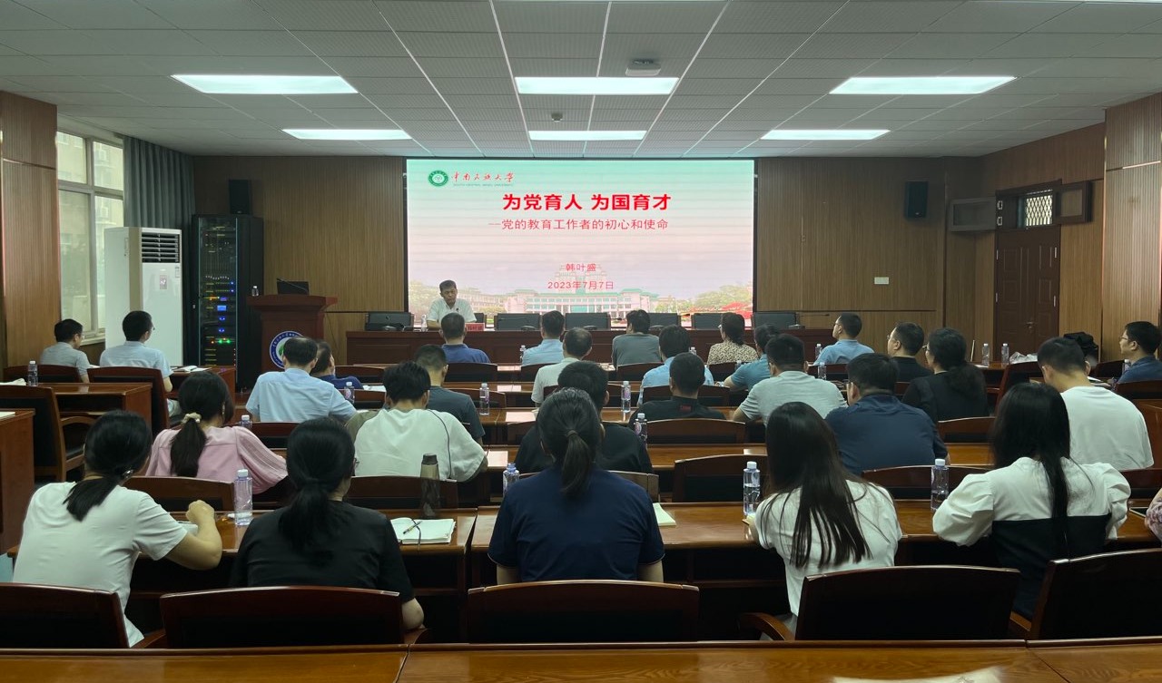 韩叶盛结合主题教育和学校工作的实际,围绕习近平总书记对高等教育的要求、深刻把握习近平总书记对教师的期望和要求、坚守为党育人为国育才的初心使命等三个方面为大家上了一堂生动的主题教育党课。