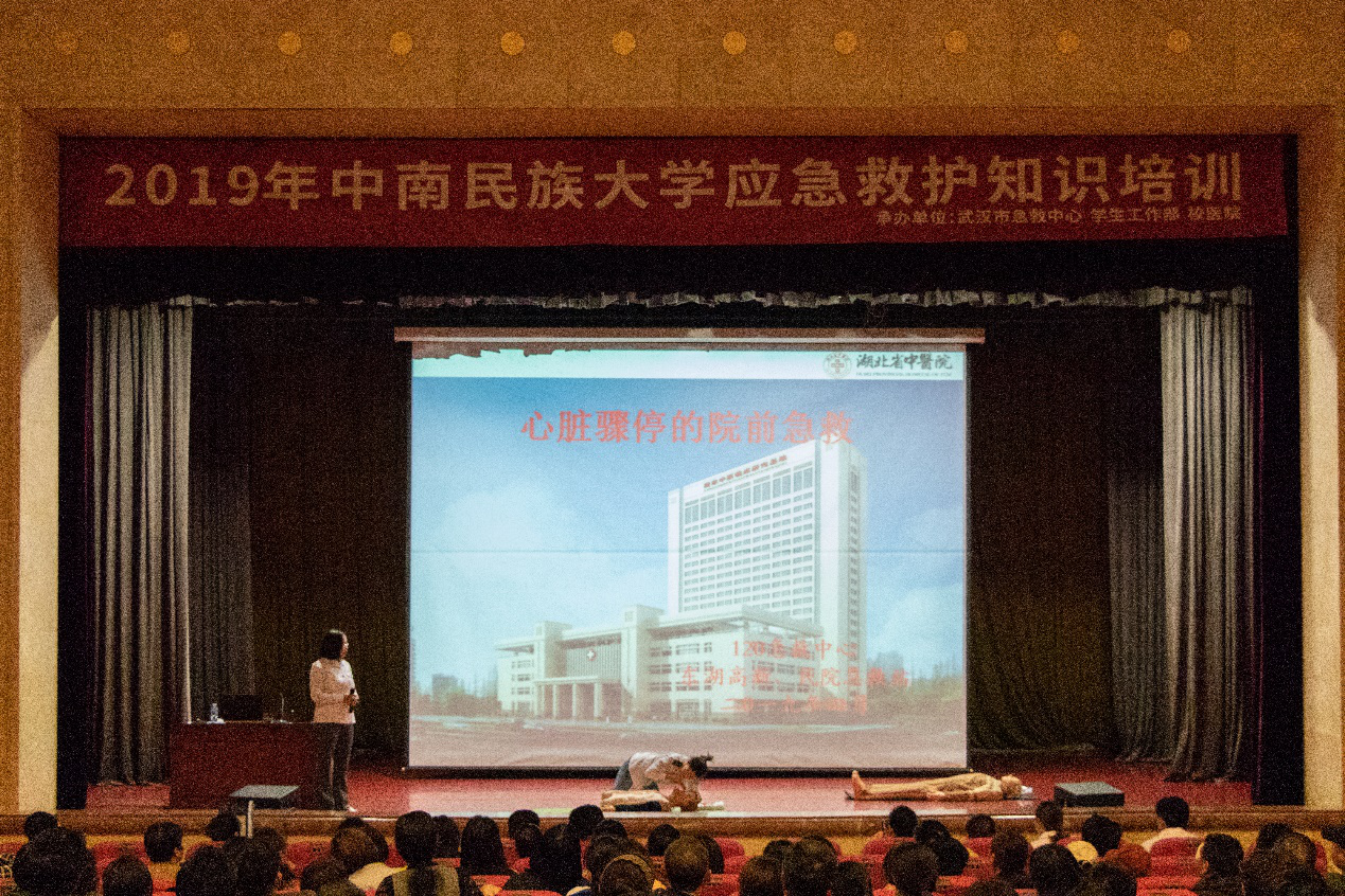 2019年4月16日晚18点30,beat365英国正版唯一网址学生工作部及校医院在学术会堂联合举办应急救护知识培训讲座,本次讲座邀请到武汉市急救中心专家及培训师,现场为beat365官网师生以突发事件处理及自救互救等内容给予指导。参加本次会议的有校医院党总支书记钟利、学工部副部长马进、学生工作部相关老师、学生宿舍管理中心全体生活辅导员、校志愿服务团队、预科教育学院学生等200余名师生。 讲座伊始,武汉市急救中心和beat365英国正版唯一网址校医院相关工作人员向在场人员分发应急救护知识学习手册,并指导大家认真学习手册中的各项救护知识,对学习过程中遇到的任何疑问进行现场答疑。 武汉市急救中心胡医生结合多年来在工作中的各种急救案例,向大家普及了生活中常用的自救互救知识,利用人体模具现场为大家演示人工呼吸、胸部按压等院前急救措施,遇较为严重的突发情况应首先拨打急救电话,并告知大家在日常生活中如何减少甚至避免意外的发生,通过知识的普及和模拟演示引导大家树立正确的自救互救意识。 据悉,学生工作部(处)将联合各学院持续开展应急救护教育活动,切实提高大学生应对突发事件和意外伤害的应急救援和自救互救的能力。