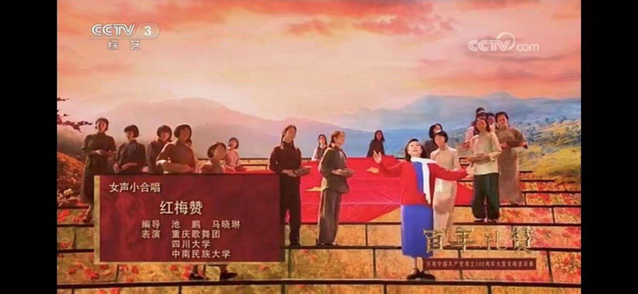 6月26日晚,中央广播电视总台《百年礼赞——庆祝中国共产党成立100周年大型交响音诗画》音乐会在央视三套盛大播出,beat365官网音乐舞蹈学院60名学生受邀参演,出色完成了《前进!伟大光荣的党》《春风春雨》《红梅赞》《我的绿水青山》4个大型节目的排练演出录制,向党的百年华诞献上了民大学子的深情祝福。