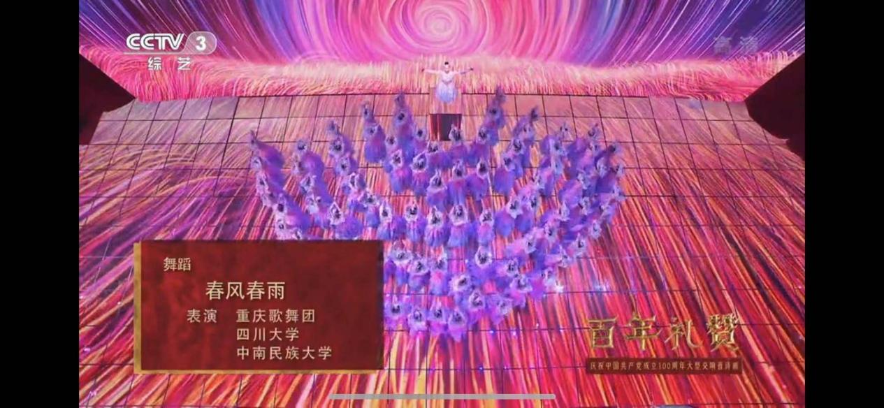 2020级本科生胡婉婷感受深刻:“很高兴有机会参加这一次的央视演出,任务艰巨,使命光荣。同时也是一次学习锻炼的好机会,让自己积累了舞台经验,近距离感受到了成熟演员的魅力。”2019级研究生王丽娟说:“合理安排行程,与编导对接排练工作,以及作为编导如何编排群舞更突出舞蹈主题并与演员沟通舞蹈所表达的思想,妥善运用舞美使舞蹈更富有画面感,这一系列工作不仅让我在专业方面得到了提升,同时在组织能力方面也得到了很好的锻炼。和同学们一起,向党献上了民大学子的青春祝福,展示了民大学子的爱国爱党情怀,则是我们这次北京之行最大的收获。”