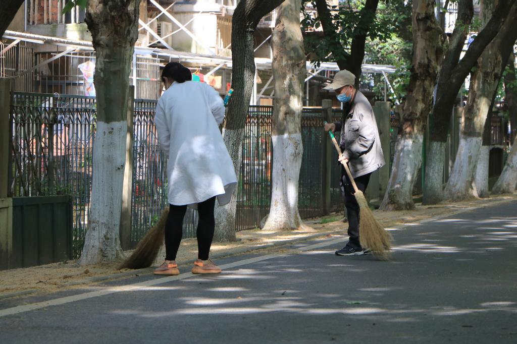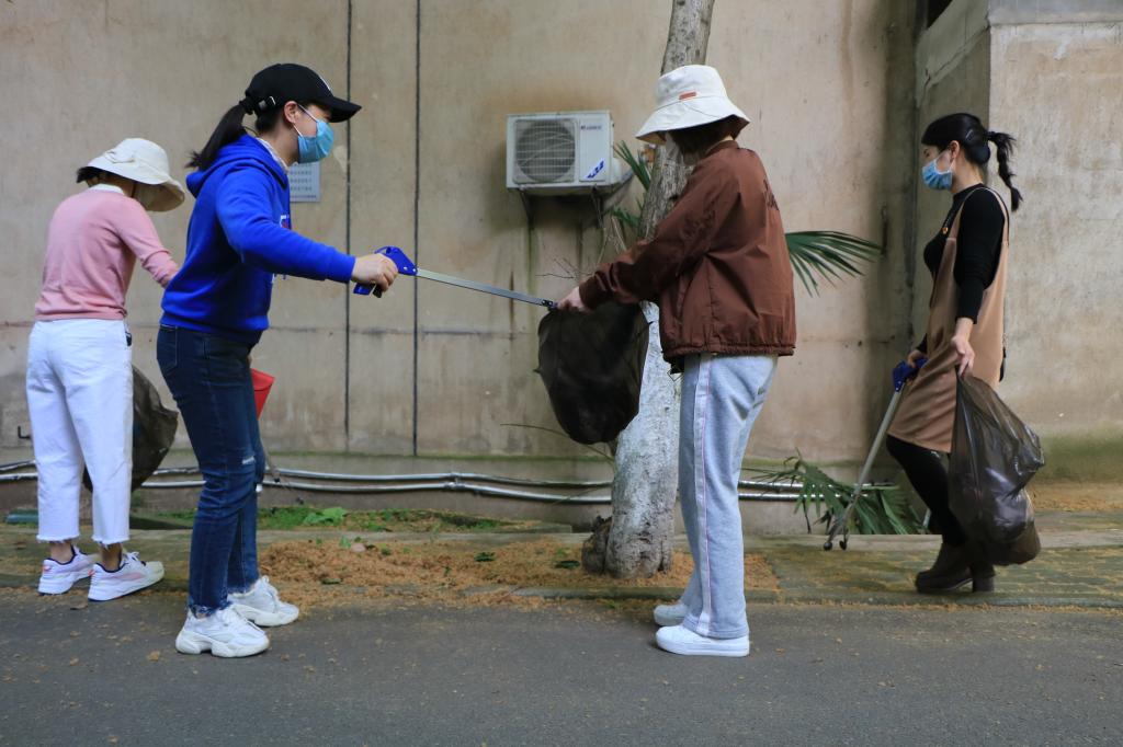 教职工党员下沉社区开展爱国卫生主题活动。周肖琪 摄