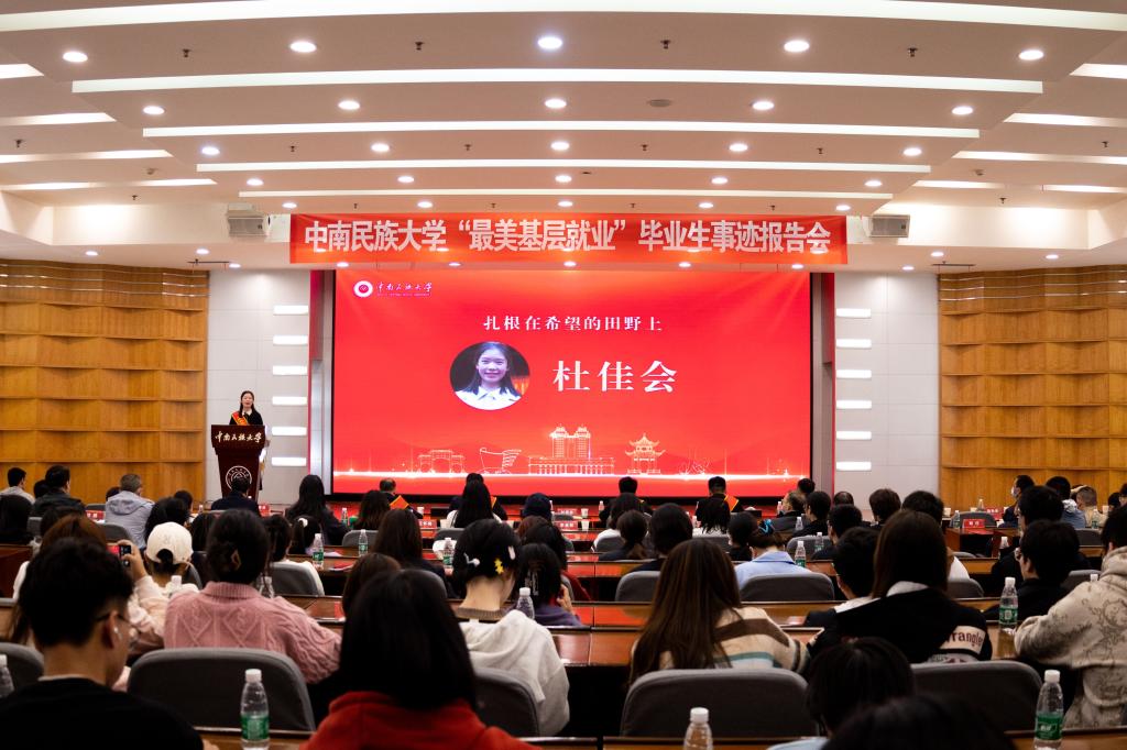 “最美基层就业”毕业生事迹报告会主会场。陈倩摄