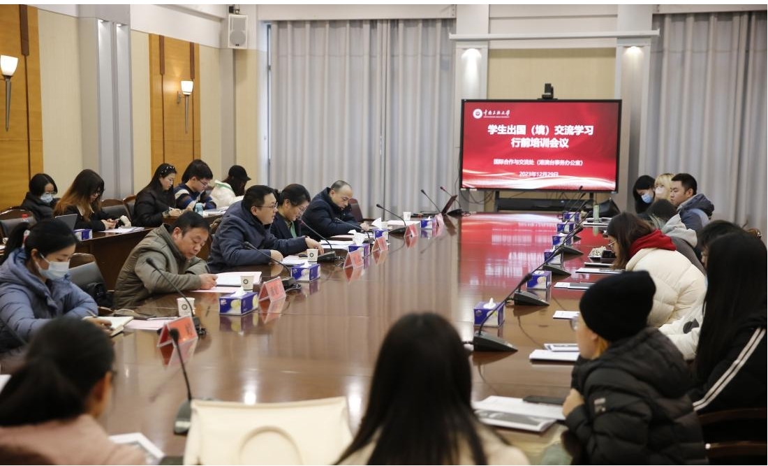 为强化出国(境)学生思想政治引领,提升其风险防范意识和应对能力,12月29日上午,学校在学术交流中心召开2024年春季学期学生出国(境)交流学习行前培训会。校党委常委、副校长覃瑞出席会议。国际合作与交流处处长(港澳台事务办公室主任)孙晓丽主持会议。