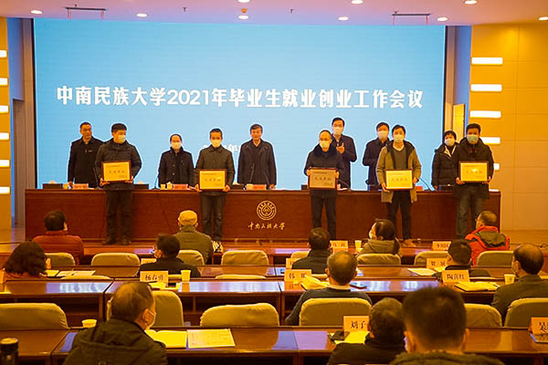 校党委副书记、副校长宋发军宣读了《关于表彰2020年毕业生就业、升学工作的决定》。化材学院、药学院、生医学院获评就业工作标兵单位,外语学院、音乐舞蹈学院、公管学院、电信学院、体育学院获评就业工作先进单位。马克思主义学院等11个学院获升学工作先进奖,药学院等13个学院获升学工作进步奖,生科学院等12个学院获升学工作贡献奖。与会校党委常委为获奖单位代表颁奖。