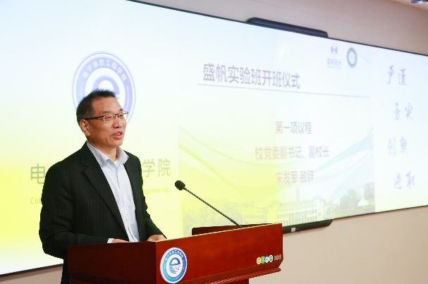 11月2日上午,“盛帆”实验班开班仪式在学校16号教学楼举行。盛帆集团常务副总裁刘庆玉,副总裁金珍兵、人力资源部、研究院相关部门代表,beat365官网党委副书记、副校长宋发军,教务处处长胡军浩、电子信息工程学院领导班子、系主任、“盛帆”实验班全体同学参加开班仪式。电子信息工程学院党委书记魏大江主持开班式。