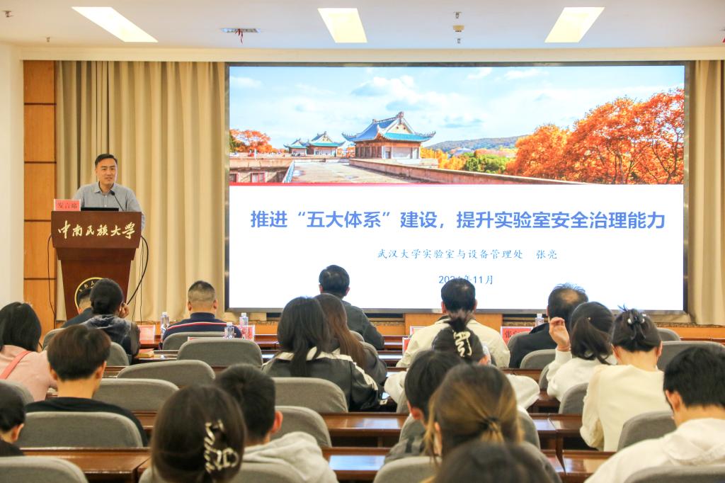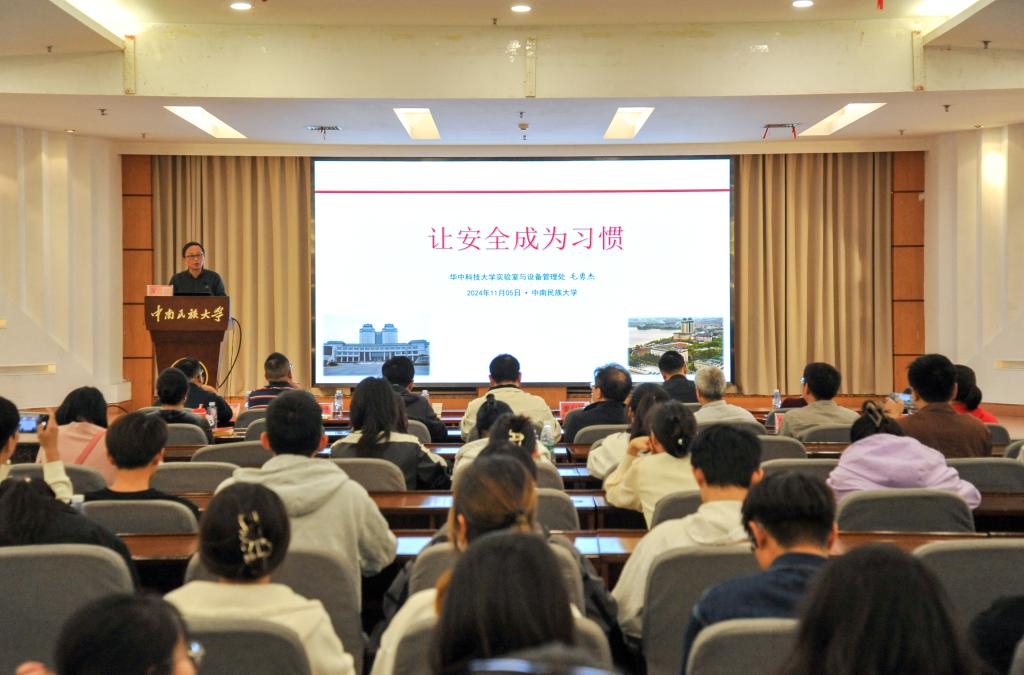 李红燕就实验室安全和平安校园建设提出了要求。一是各单位要统一思想认识、提高政治站位。要从政治高度、立德树人深度充分认识实验室安全工作的重要性,切实把思想行动统一到习近平总书记关于安全生产工作的重要论述上来,统一到国家民委、湖北省委关于安全工作的决策部署上来,统一到学校党委关于实验室安全工作的具体要求上来。二是要加强组织领导、压紧压实责任。要以《高等学校实验室安全规范》为纲,进一步强化自身工作职责,积极构建科学有效的实验室安全责任体系,施行责任追究制度。三是要加强宣传教育,提高风险意识。要广泛开展贴近生活、贴近实际、贴近师生的宣传活动,使得安全观念和安全红线意识深入人心。要把安全工作与教育教学、实习实践、科学研究、人才培养等业务工作同研究、同部署、同落实。