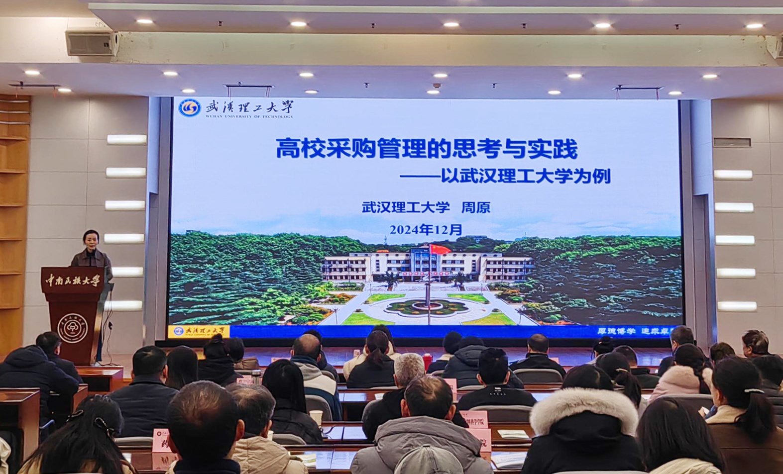周原作了题为《高校采购管理的思考与实践——以武汉理工大学为例》的报告。她围绕高校采购面临的新形势、有关高校采购管理的思考以及高校采购管理体系构建实践3方面进行讲解,提出采购业务不但要严守合法合规的底线,更需牢固树立红线意识,从思想根源和操作流程上全面保障采购工作的公正、透明与高效。