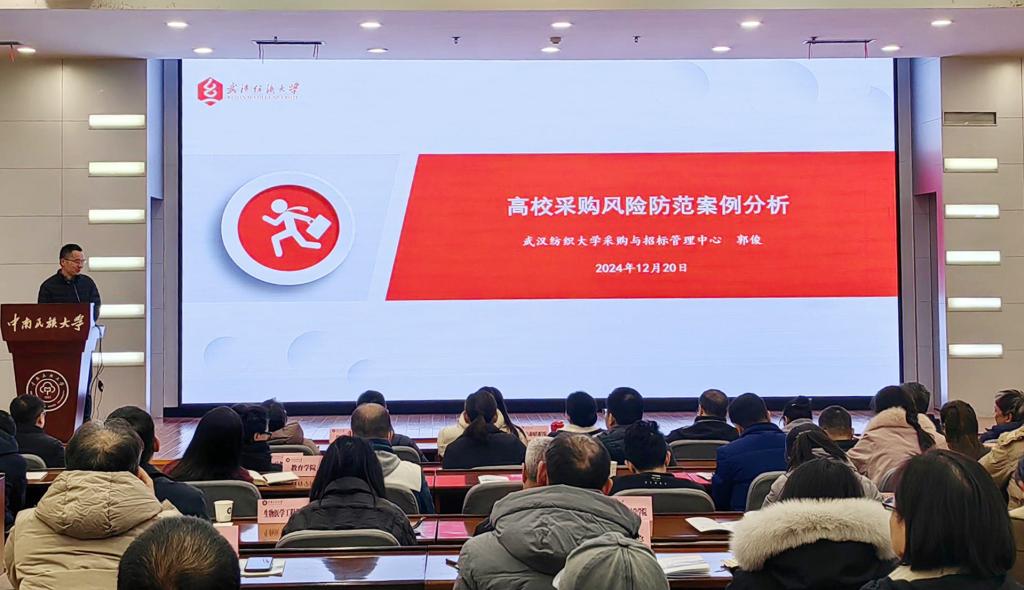郭俊以《高校采购风险防范案例分析》为题作报告。他深入剖析了高校采购所面临的形势与任务,阐释了政府采购的来源脉络及其依据所在,强调招标采购必须依法依规开展的核心理念,并以具有针对性的“十二个风险点”,揭示了采购风险防范的关键要义,同时提出了一系列极具实用性的方法、策略。