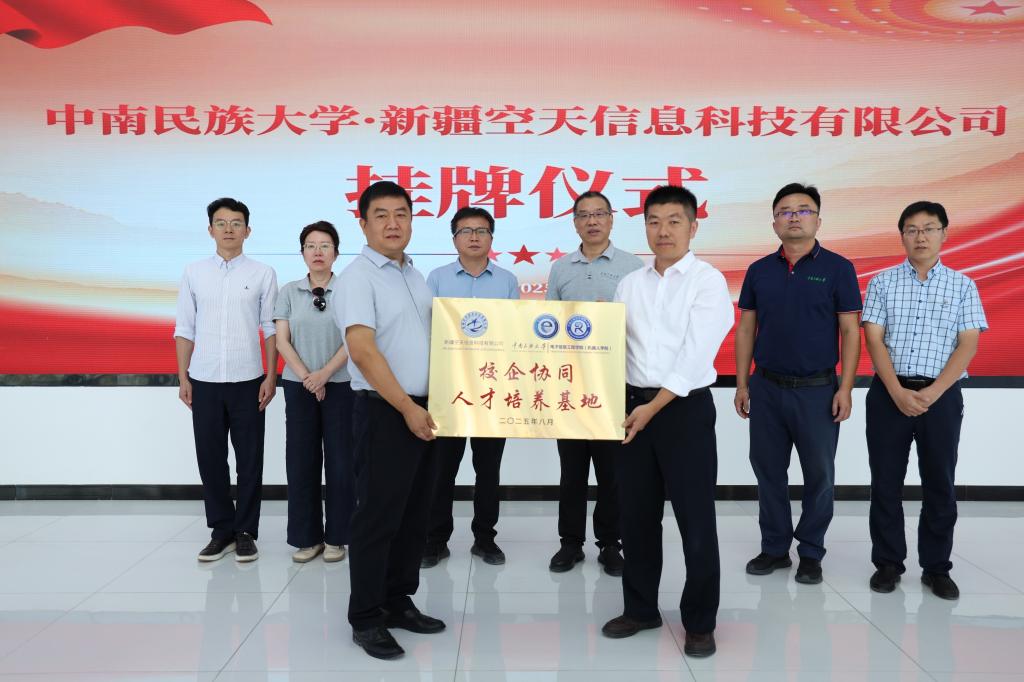会后,宋发军一行到喀什市空天信息产业园调研,见证电子信息工程学院(机器人学院)与新疆空天信息科技有限公司共建“校企协同人才培养基地”和“研究生工作站”,并举行挂牌仪式。