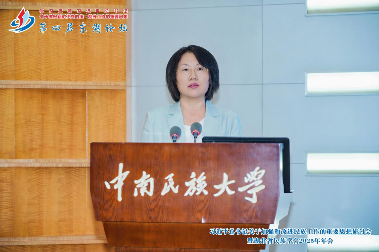 赵少莲作总结讲话。她指出,本届论坛的圆满举行,实现了理论阐释与实践创新的深度融合、双向赋能,不仅为湖北民族工作高质量发展提供了有力的智力支持与坚实的理论支撑,更为工作创新突破注入了新动能。